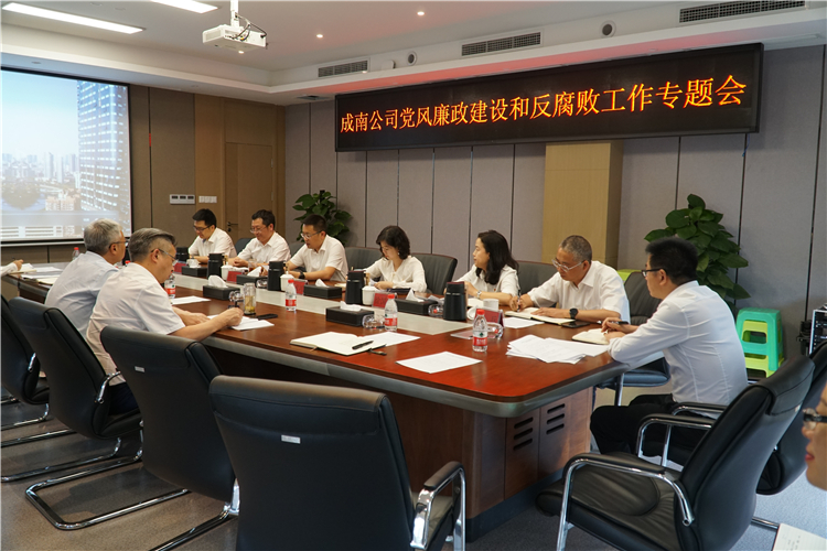 2022年5月27日,成南公司组织召开党风廉政建设和反腐败工作专题会。会议由公司党委书记、董事长苏开春主持,公司全体领导班子成员及各部门负责人参加会议。