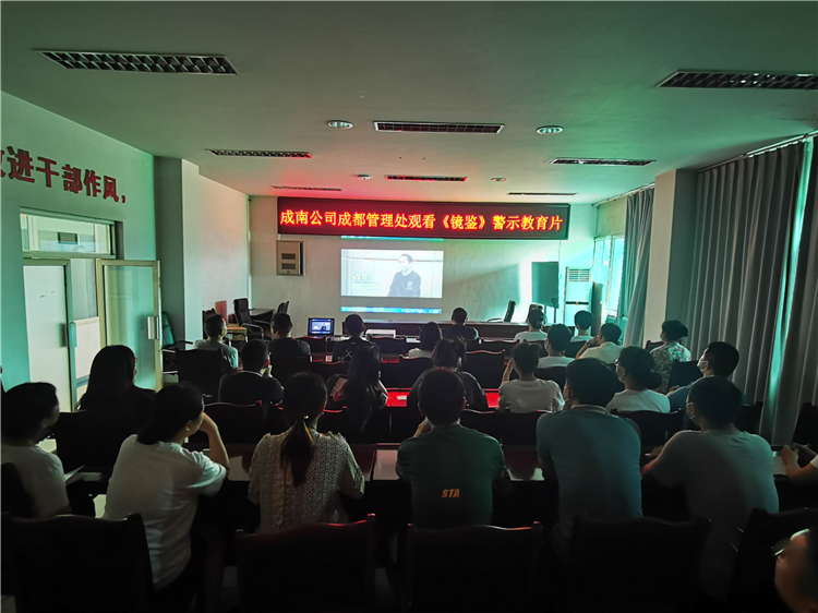 2022年8月17日,为进一步强化党员干部党性观念、纪律意识和廉洁从业意识,筑牢防腐拒变思想防线,成都管理处组织全体干部、职工集中观看《镜鉴》警示教育片。