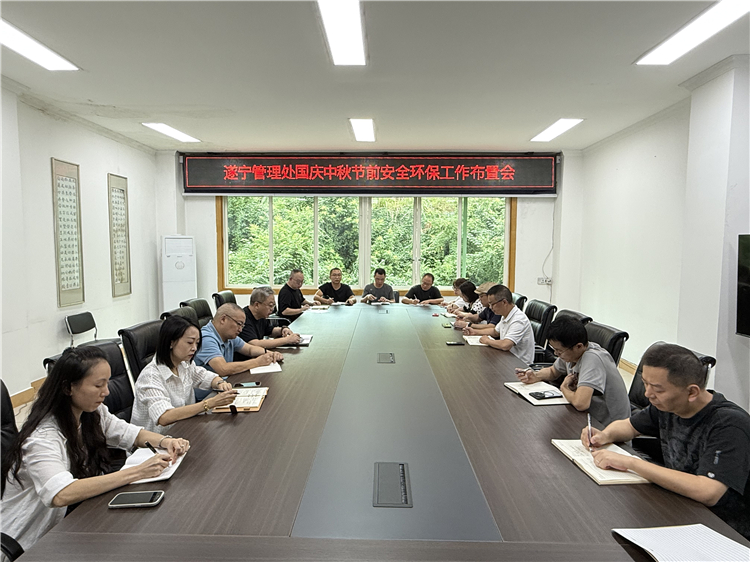2025年9月12日,遂宁管理处组织召开国庆中秋节前安全环保工作布置会,各科室、稽查队、机电维护队、监控分中心等人员参加。