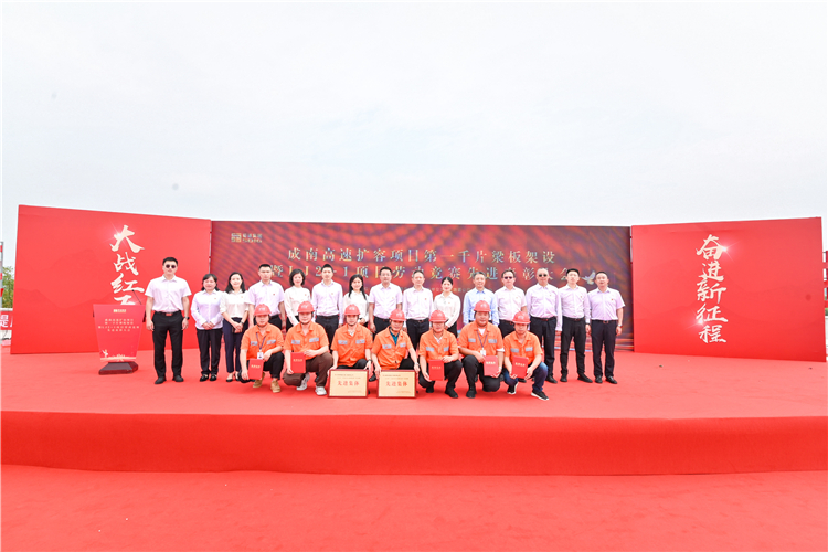 2022年5月20日,成南公司和四川路桥交建集团路面公司联合召开成南高速扩容项目第1000片梁板架设暨LJ2-1项目劳动竞赛先进表彰大会,川高公司党委委员、董事、工会主席吴朝金,四川路桥交建集团党委副书记、董事、工会主席向绪芳出席活动。