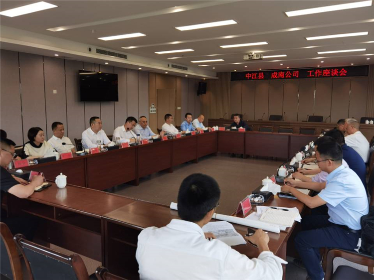 2022年5月19日,中江县委常委、副县长黄锐,县人大副主任汪怀玉一行赴成南公司进行工作调研交流。成南公司党委副书记、总经理万忠金,党委委员、工会主席徐国梅,党委委员、副总经理秦朗,党委委员、副总经理兰兵参加交流活动。