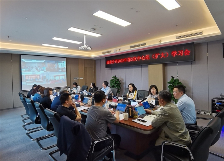 2022年4月21日,成南公司召开党委理论学习中心组2022年第3次(扩大)学习会议。公司全体党委理论学习中心组成员及各部门负责人参加会议。