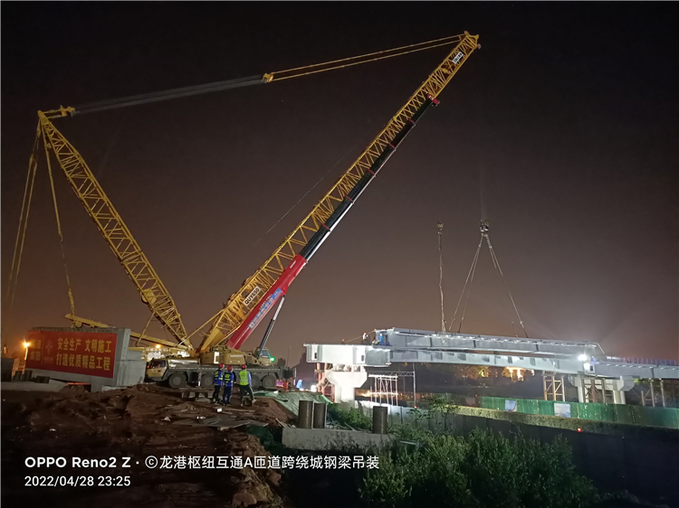 2022年4月29日凌晨1点10分,在经历约3个小时连续奋战,随着钢箱梁就位班组一声清脆的哨声,长52m、重达78吨的龙港枢纽互通A匝道上跨绕城高速的钢箱稳稳落在了盖梁上,宣告成都入城复线段控制性工程之一的龙港枢纽互通上跨绕城高速桥梁全部架设完成。至此,在成南公司、高速交警、执法、施工等参建单位、管理单位约200余人的精心组织、密切配合下,在施工时间有限、工作任务繁重和安全管控力度艰巨的情况下,龙