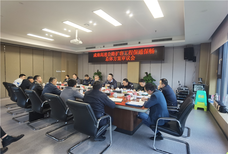 2022年3月31日,成南公司组织召开成南高速公路扩容工程保通保畅总体方案审议会。厅高管局总工程师孙振、四川交警总队、高速公安一分局及五分局、交通执法三支队相关人员,成南公司党委副书记、总经理万忠金,党委委员、副总经理廖壮志及公司相关部门负责人参加会议。