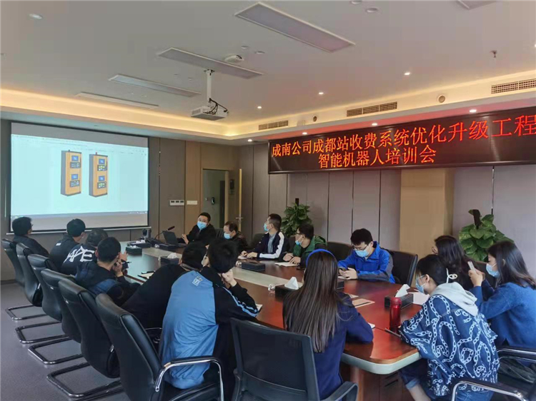 2022年3月29日,成南公司组织召开“成都站收费系统优化升级工程”智能机器人培训会。公司稽查监控中心、收费管理部、成都管理处机电运维队及成都收费站站级管理人员、收费人员代表参加培训。