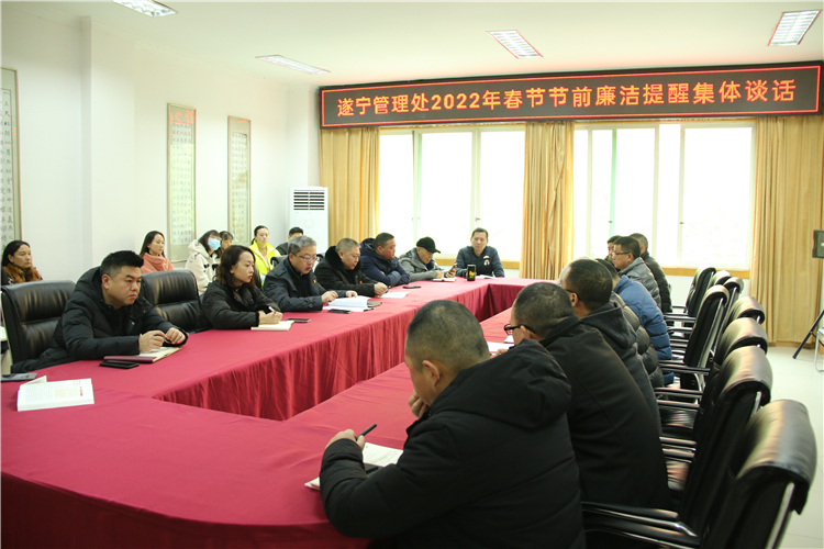 2022年1月18日,遂宁管理处按照公司党委、纪委工作要求,组织各科室职工开展“春节”节前廉洁提醒集体谈话,严格落实春节期间纠“四风”树新风工作。