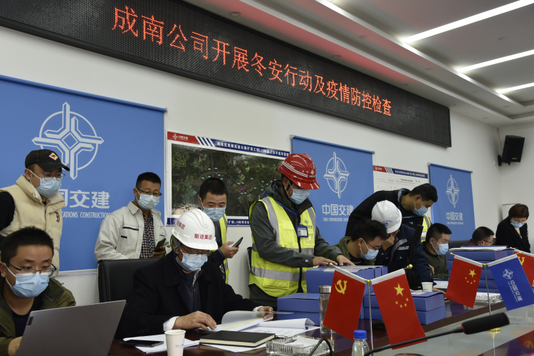 2021年11月10日,成南公司副总经理兰兵带队开展成南扩容项目成都入城复线段冬安行动及疫情防控检查。