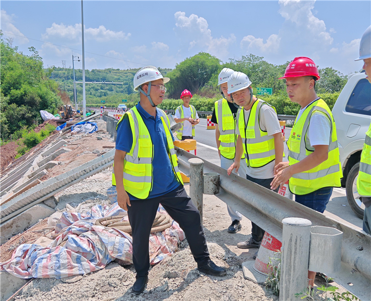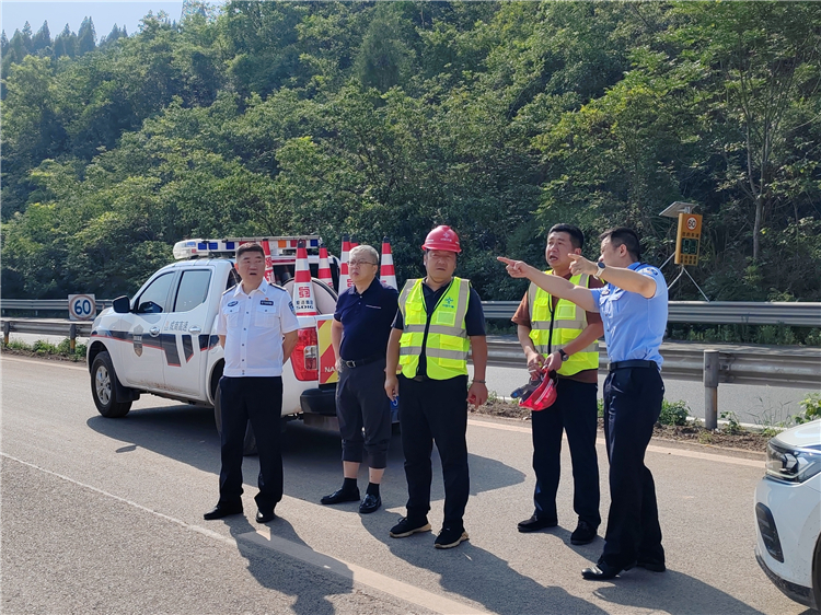2025年7月22日,四川省交通执法总队(厅高管局)总工程师孙振率队赴成南公司开展汛期工作督导,厅高速公路交通执法第三支队副支队长何清华等参与检查。成南公司党委副书记、总经理万忠金,公司副总经理田亮及遂宁管理处相关工作人员陪同。