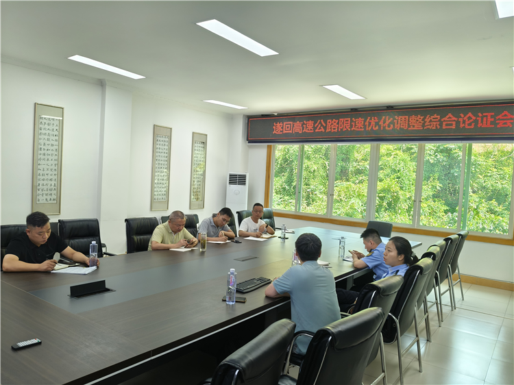 2025年7月14日,成南公司组织召开遂回高速限速优化调整综合论证会,公司养护部、遂宁管理处,辖区高速交警五支队三大队、交通执法第三支队十三大队、北京交科公路勘察设计院相关人员参加会议。