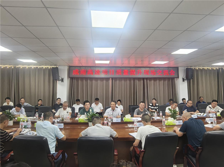 为全面提升成南、遂渝扩容项目质量管控水平,落实公司质量提升专题会会议精神,营造项目“强化交流,取长补短,比学赶帮”的质量管控氛围,有效提升项目路面施工质量,9月3日公司组织成南、遂渝扩容各参建单位召开路面工程质量提升现场交流会。公司党委副书记、总经理万忠金,党委委员、副总经理廖壮志,党委委员、副总经理秦朗,党委委员、副总经理兰兵参加交流会。