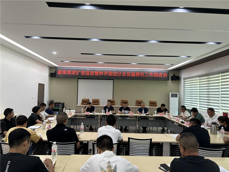 2024年9月2 日,成南公司组织召开遂渝高速扩容道路管养界面划分及设施移交工作推进会。公司工程养护部、工程技术处、遂宁管理处、遂宁业代处和遂渝扩容改造项目ZCB1、ZCB2、扩容改造项目JL1、JL2相关负责人参加。