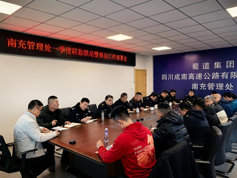 2026年1月29日,成南公司南充管理处联合辖区高交执法部门召开一季度联勤联动暨春运工作部署会,蜀道养护及外协救援单位参会。