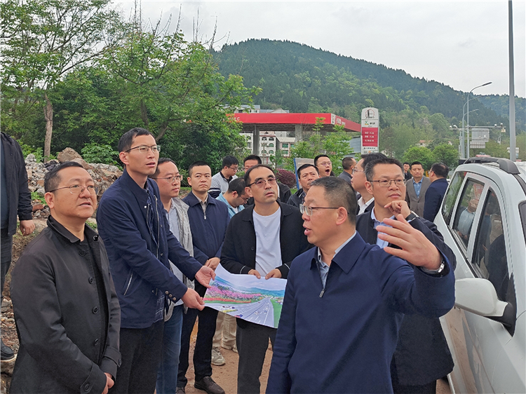 2024年4月9日下午,蓬溪县县委书记黄亚军一行到成南高速扩容项目考察调研。成南公司党委委员、副总经理廖壮志,南充业主代表处相关人员陪同调研。