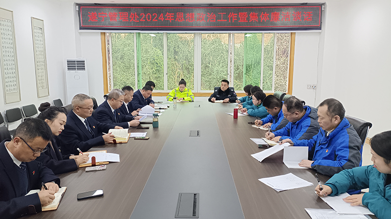 2024年2月2日,遂宁管理处组织进行春节前廉洁提醒集体谈话,引导广大干部职工坚决贯彻落实中央八项规定精神,持之以恒正“四风”、端作风,营造风清气正的节日氛围。管理处党支部全体委员,各科室、各站(队、区)负责人参加。