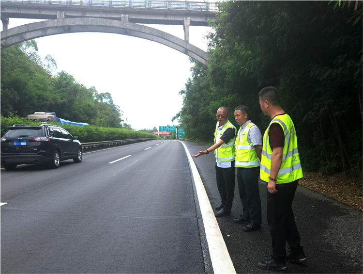 8月12日,成南公司党委副书记、总经理万忠金,党委委员、副总经理兰兵赴南充管理处南渝路段调研指导迎国检工作。南充管理处相关工作人员陪同调研。