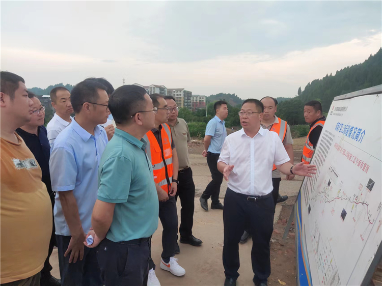 7月25日下午,蓬溪县县委书记黄亚军一行前往成南高速扩容项目考察调研。成南公司党委委员、副总经理廖壮志,南充业主代表处,5标项目经理部、总监办等相关人员陪同。
