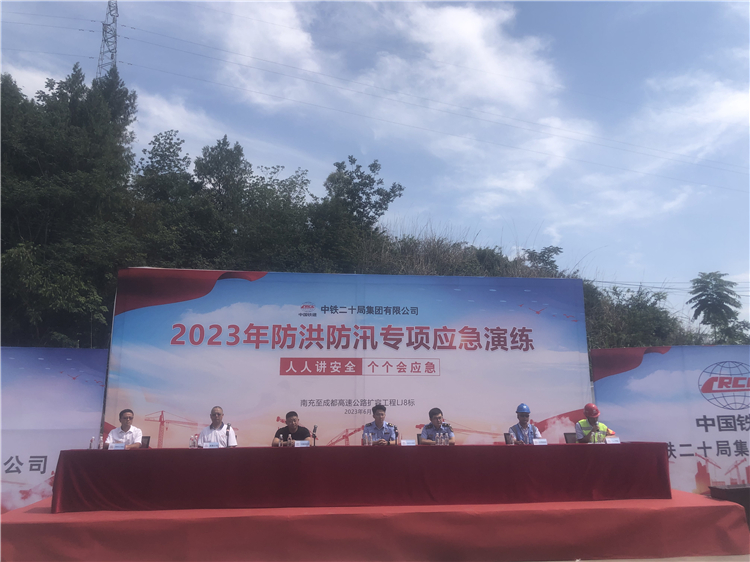 2023年6月12日,成南高速扩容工程LJ8标在金堂县高板镇组织开展防洪防汛专项应急演练。成都市交通公路水运支队副支队长彭景,竹篙镇政府工会主席邓明武,成南公司党委委员、副总经理兰兵出席观摩演练。