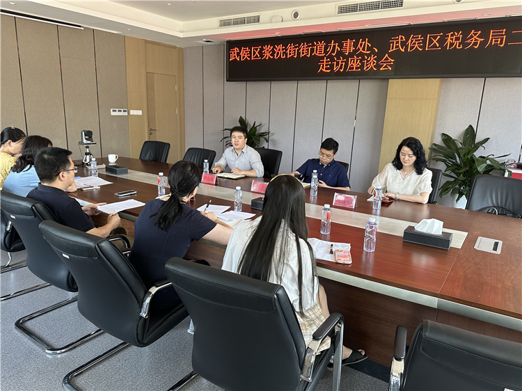 2023年6月12日,成都市武侯区浆洗街街道办事处主任张承思、街道分中心主任吕春燕,武侯区税务局二所副所长罗友森一行到成南公司开展走访调研并召开座谈会,成南公司党委委员、副总经理秦朗,公司财务部相关人员陪同调研。