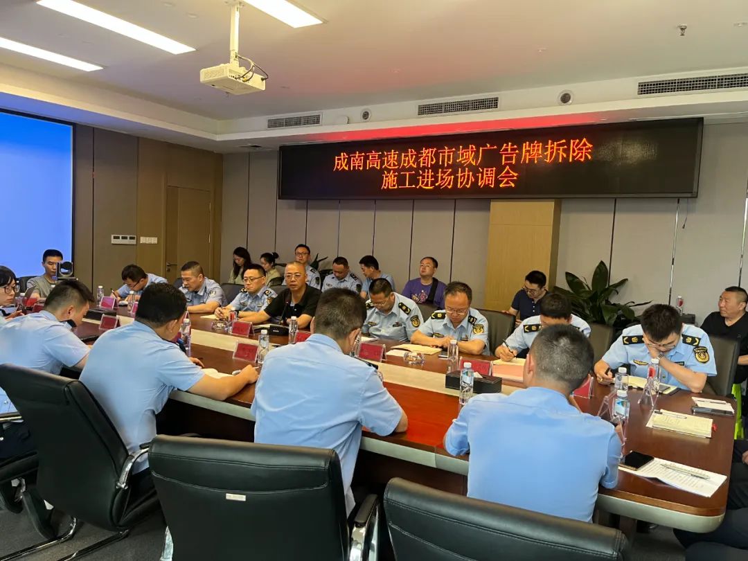 2023年6月13日,为加快推进成南高速成都市域沿线广告设施清理整治工作,成南公司组织召开“成南高速成都市域广告牌拆除施工进场协调会”,会议由公司副总经理兰兵主持,省交通运输综合执法总队三支队副支队长何清华,成都市交通运输综合执法总队副总队长刘骥出席会议。