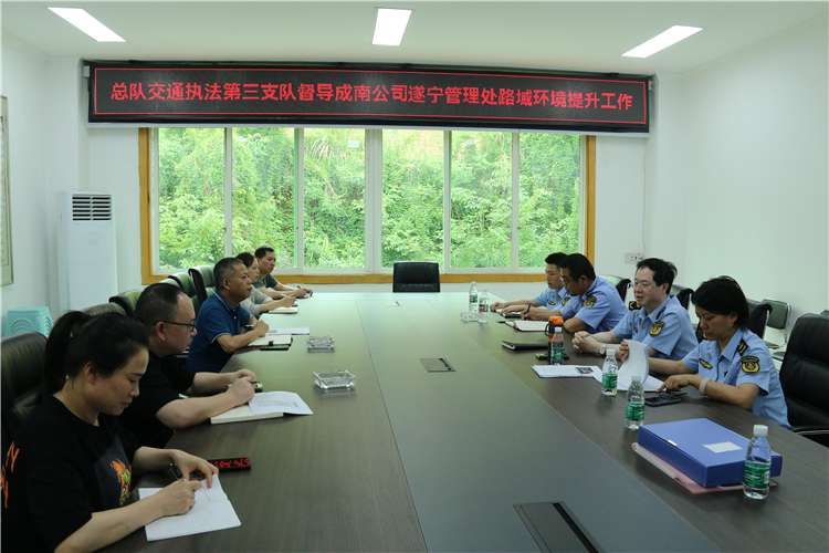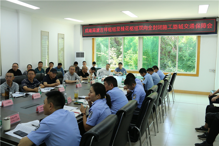5月16日,成南公司联合辖区高速交警、交通执法和地方职能部门召开成南高速吉祥枢纽至桂花枢纽双向全封闭施工路域交通保障会。