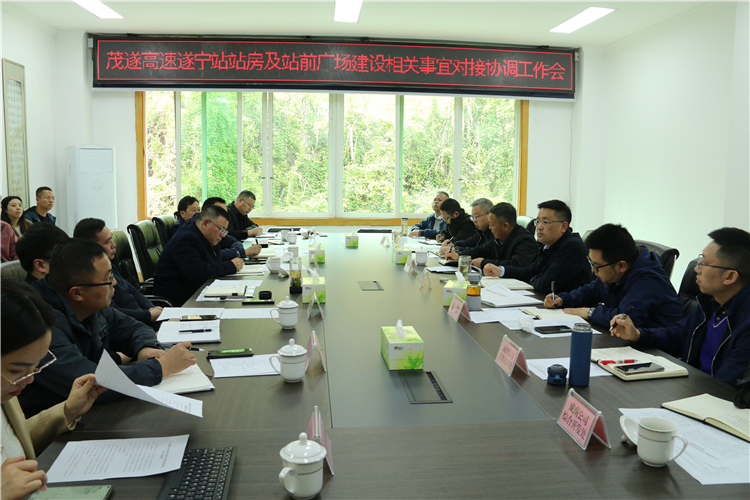 3月28日,成南公司与遂宁市交通运输局、遂宁经开区管委会联合召开茂遂高速遂宁站站房及站前广场建设相关事宜对接协调工作会。成南公司党委书记、董事长苏开春,党委副书记、总经理万忠金,党委委员、副总经理秦朗,遂宁市交通运输局党组成员、副局长张扬,遂宁经开区党工委副书记、管委会常务副主任谢君环参加会议。