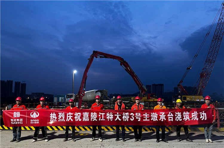 2023年3月22日凌晨4点45分,历时30小时,在参建各方的共同努力下,南充至成都高速公路扩容工程LJ4-2标嘉陵江特大桥首个主墩承台顺利完成浇筑,为下一步主塔施工奠定了坚实的基础,同时也代表成南扩容项目控制性工程迈入可控阶段。