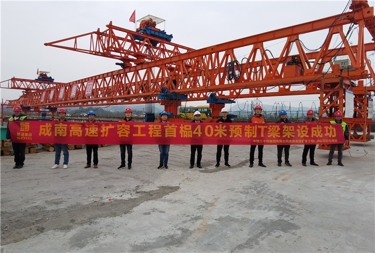 2023年2月15日9点38分,随着现场指挥的清脆哨声,南充至成都高速公路扩容工程主线段淮口沱江大桥40米预制T梁稳稳的落在盖梁预定位置。至此,项目主线成都段控制性工程之一的淮口沱江大桥预制T梁首架圆满完成,此次预制T梁的顺利架设不仅为2023年复工复产“开门红”奠定了良好开局,更标志着项目桥梁工程施工节点取得突破性进展,拉开了主线扩容桥梁工程上部结构施工的序幕。