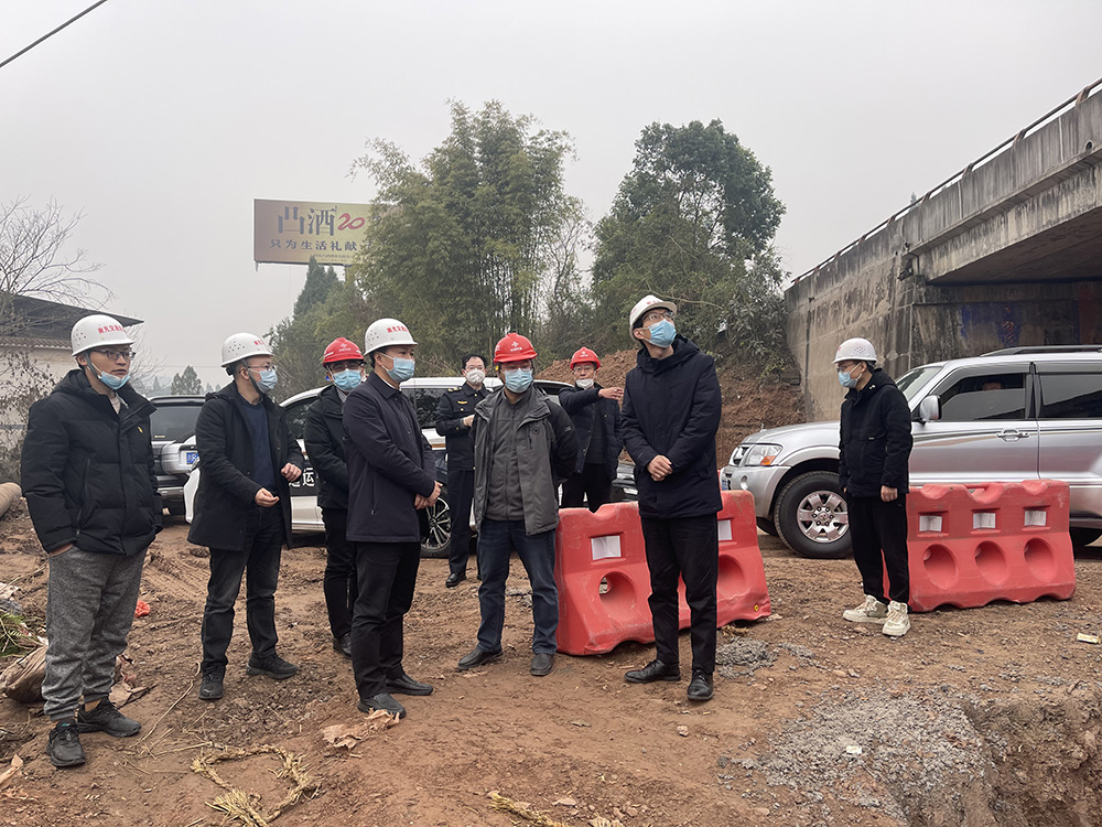 1月13日,厅建管处四级调研员江凌一行赴成南扩容项目成都入城复线段开展春节前安全检查,市交通局建管处副处长田皓、水运支队副支队长彭景、公司党委委员、副总经理兰兵陪同。