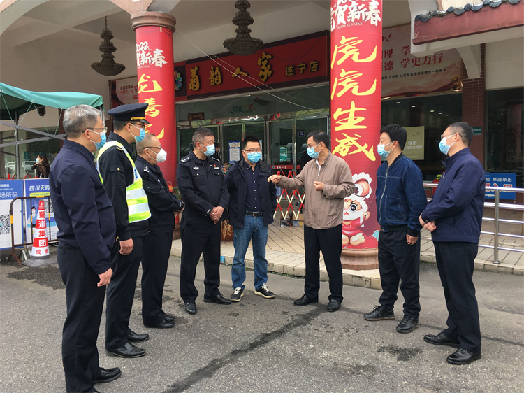 2022年10月11日,遂宁市副市长雷刚带领市交通运输局安全总监刘永志,市公安局、大英县政府等相关负责人到成南公司遂宁服务区督导交通运输违规违法行为治理和疫情防控工作。成南公司党委委员、副总经理秦朗,公司遂宁管理处,辖区高速交警、交通执法部门负责人陪同检查。