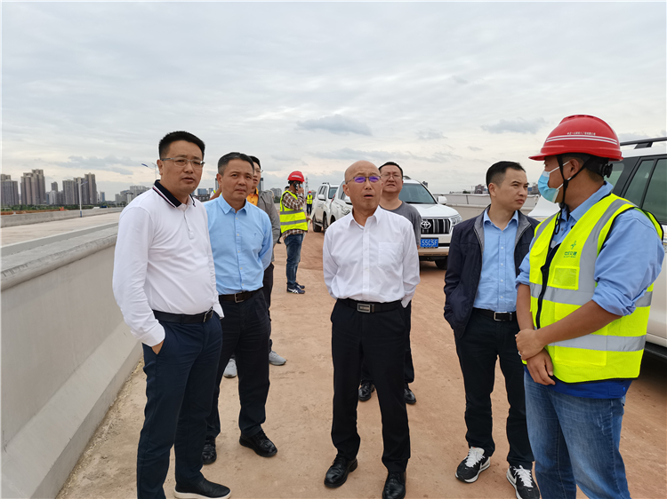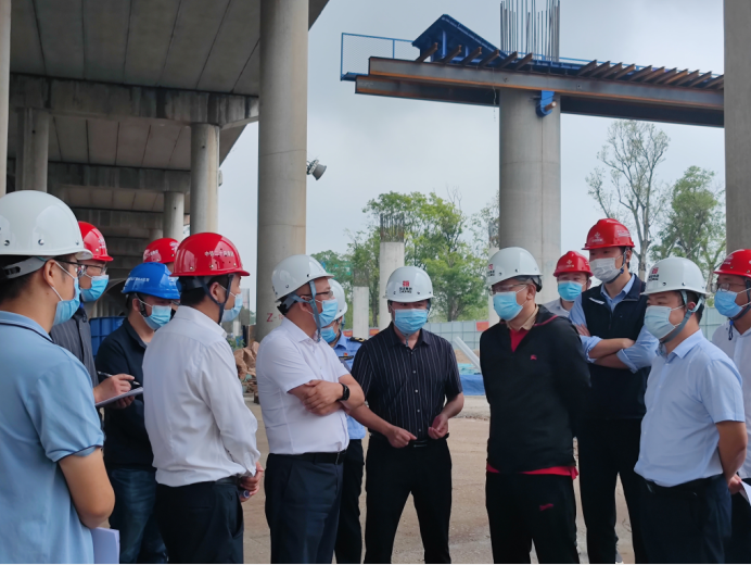2022年9月16日,成都市交通运输局副局长何发礼一行赴南充至成都高速公路扩容工程成都建设段调研指导工作。金堂县副县长吴峰,成南公司党委书记、董事长苏开春陪同调研。