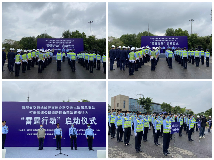 2022年9月27日,成南公司联合厅高速公路交通执法第三支队、高速公安一分局、成都市交通运输行政执法总队直属一支队召开打击高速公路道路运输违法违规行为“雷霆行动”启动仪式。