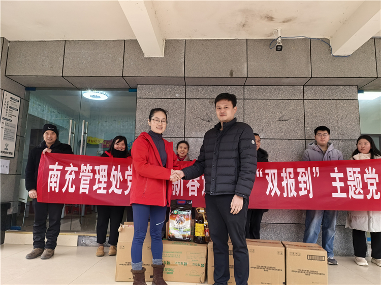 2026年1月22日,成南公司南充管理处党支部组织党员代表前往高坪区青莲镇社区,开展“双报到”主题党日活动。活动以暖心举措践行“为人民服务”的初心使命,用实际行动为社区困难群众送去关怀与新春祝福,推动党建引领基层治理工作走深走实。