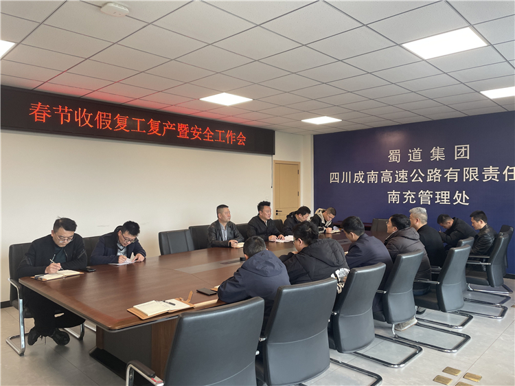 2026年2月24日,成南公司南充管理处召开复工复产暨安全工作会议,对节后养护复工复产的安全生产工作作出部署,蜀道养护集团川东分公司遂宁项目部参加了此次会议。