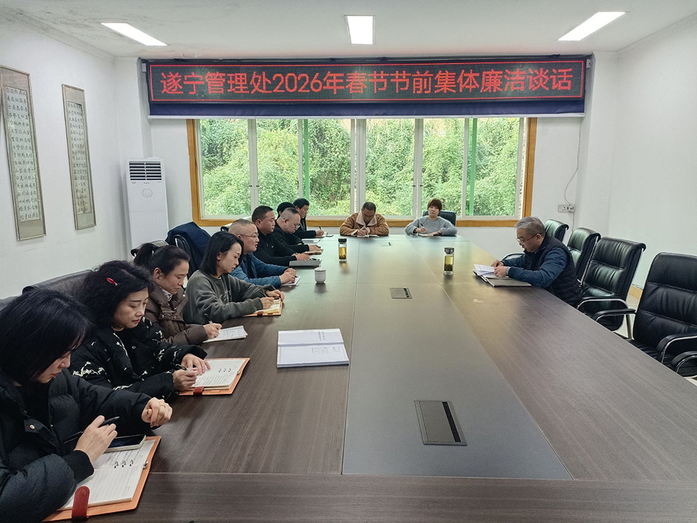 2026年2月10日,为营造风清气正、平安祥和的春节氛围,成南公司遂宁管理处组织召开2026年春节节前集体廉洁谈话会议,管理处各科室人员参加会议,共同筑牢节日廉洁防线。