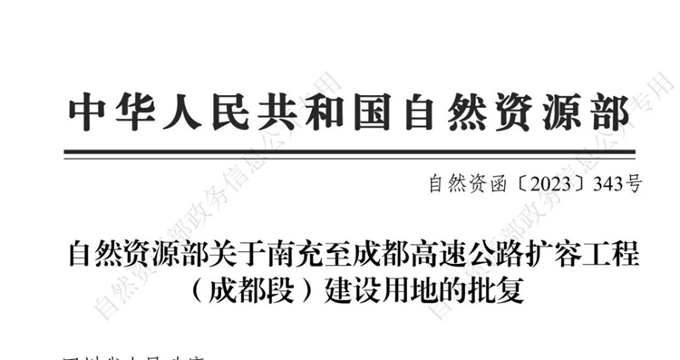 经国务院批准,自然资源部正式批复南充至成都高速公路扩容工程(成都段)建设用地,批复总面积394.4673公顷。至此,南充至成都高速公路扩容工程项目全线用地均已取得批复,为项目建设提速提供了有力保障。