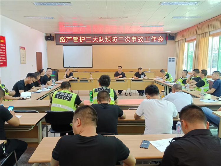2022年7月7日,遂宁管理处组织召开预防二次交通事故工作会议。路产管护二大队各巡逻中队、清排障中队负责人和业务骨干参加会议。