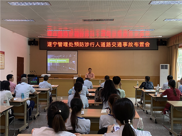 2022年7月20日,遂宁管理处组织召开预防涉行人道路交通事故工作布置会。管理处所辖收费站站长、站管、班长和收费员代表参加会议。