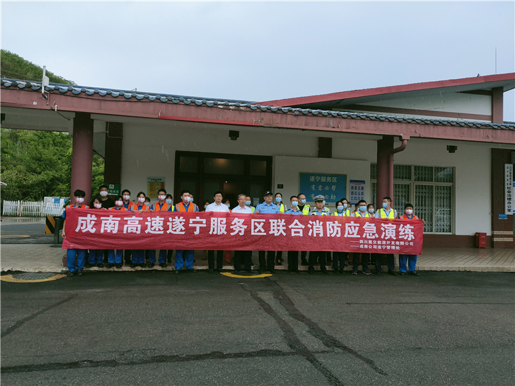 2022年7月22日,遂宁管理处联合辖区高速公安五分局一大队、四川蜀交能源公司在成南路遂宁服务区开展消防应急演练暨安全知识培训活动。遂宁管理处、高速公安五分局一大队、四川蜀交能源公司相关人员参加培训。
