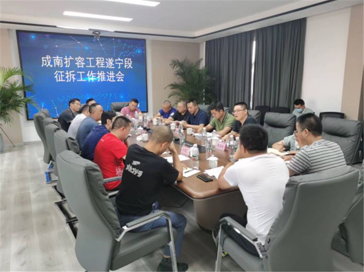 2022年7月25日,遂宁市交通运输局组织召开成南扩容工程遂宁段征拆工作推进会。遂宁市交通运输局副局长张扬,遂宁市各区县高协办及自规局相关人员,遂宁业主代表处、南充业主代表处、遂宁管理处主要负责人参加会议。