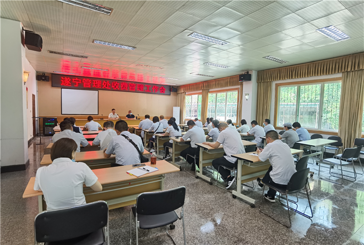 2022年4月27日,遂宁管理处组织召开收费管理工作会议。管理处稽查收费科,各收费站长、站级管理人员、监控分中心和机电维护相关人员参加会议。