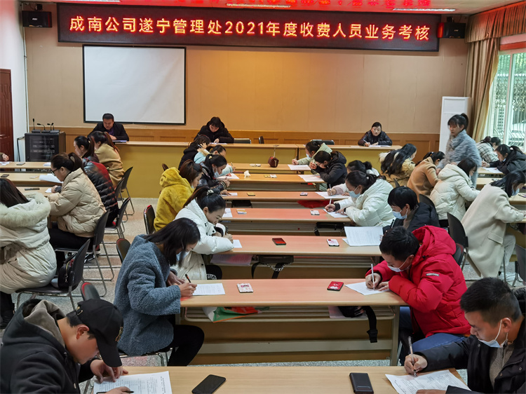 2021年12月7日至10日,遂宁管理处分4批组织辖区收费站站长、站管、收费班长及收费员开展收费人员业务考核,在岗收费人员考核覆盖率达100%。