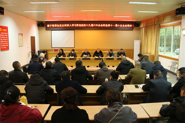 2021年12月14日,遂宁管理处党支部组织全体党员开展深入学习贯彻党的十九届六中全会和省委十一届十次全会精神专题会议。