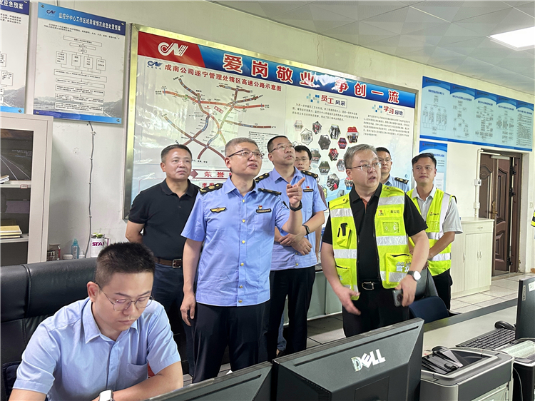 2025年7月22日,四川省交通执法总队(厅高管局)总工程师孙振率队赴成南公司开展汛期工作督导,厅高速公路交通执法第三支队副支队长何清华等参与检查。成南公司党委副书记、总经理万忠金,公司副总经理田亮及遂宁管理处相关工作人员陪同。