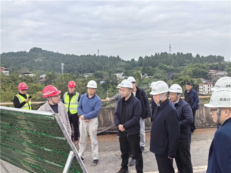 11月4日,四川省交通运输厅建管处副处长王文初及川高公司党委委员、副总经理兰富安一行赴成南扩容项目开展建设督导工作,成南公司党委副书记、总经理万忠金陪同。