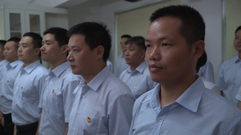 随后全体党员集体合唱,音调从低到高,节奏轻快明亮。整个曲调层次分明,时而婉转灵动,像涓涓的溪流,滋润着心田,时而大气恢弘,如万马奔腾。
